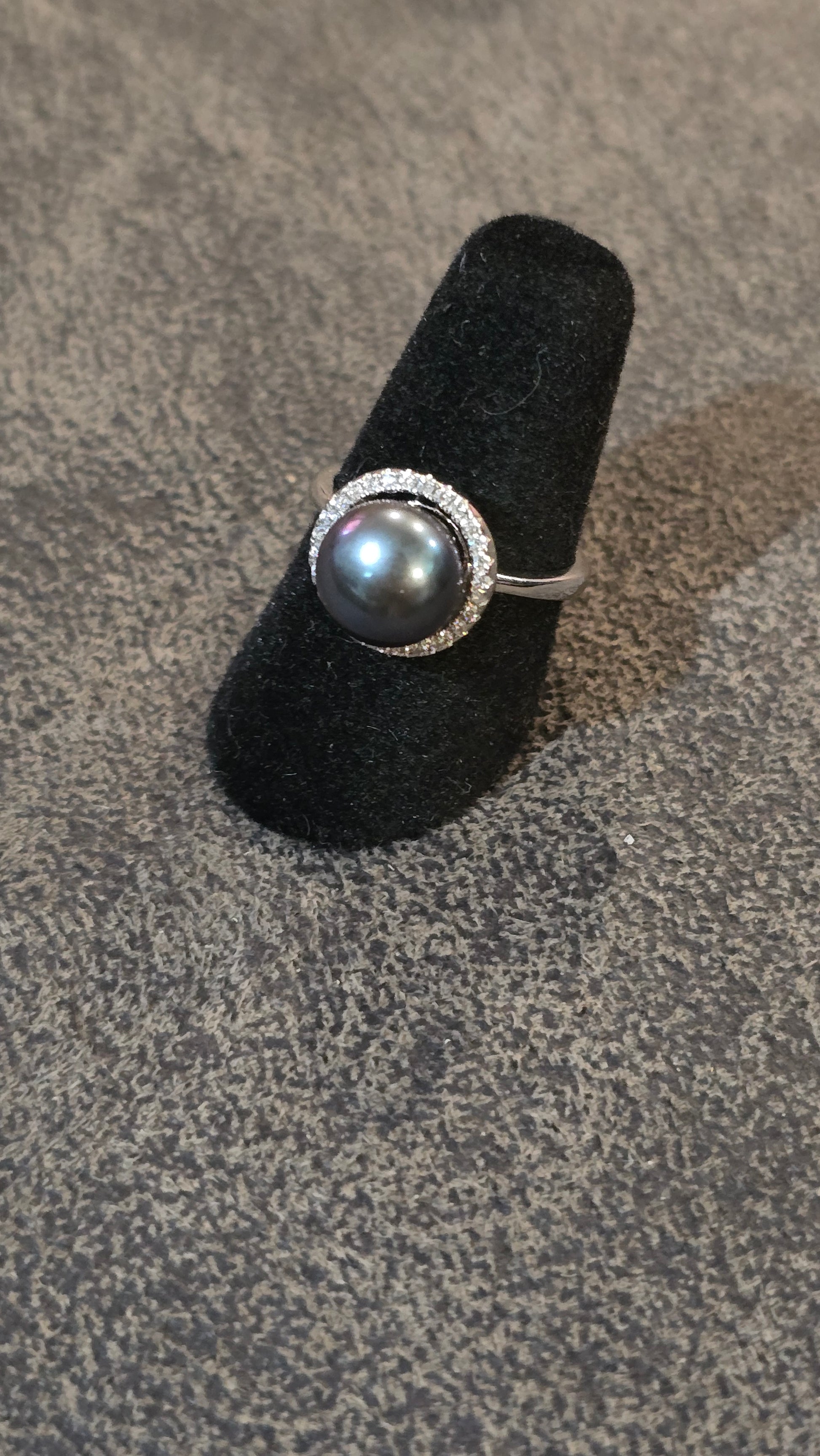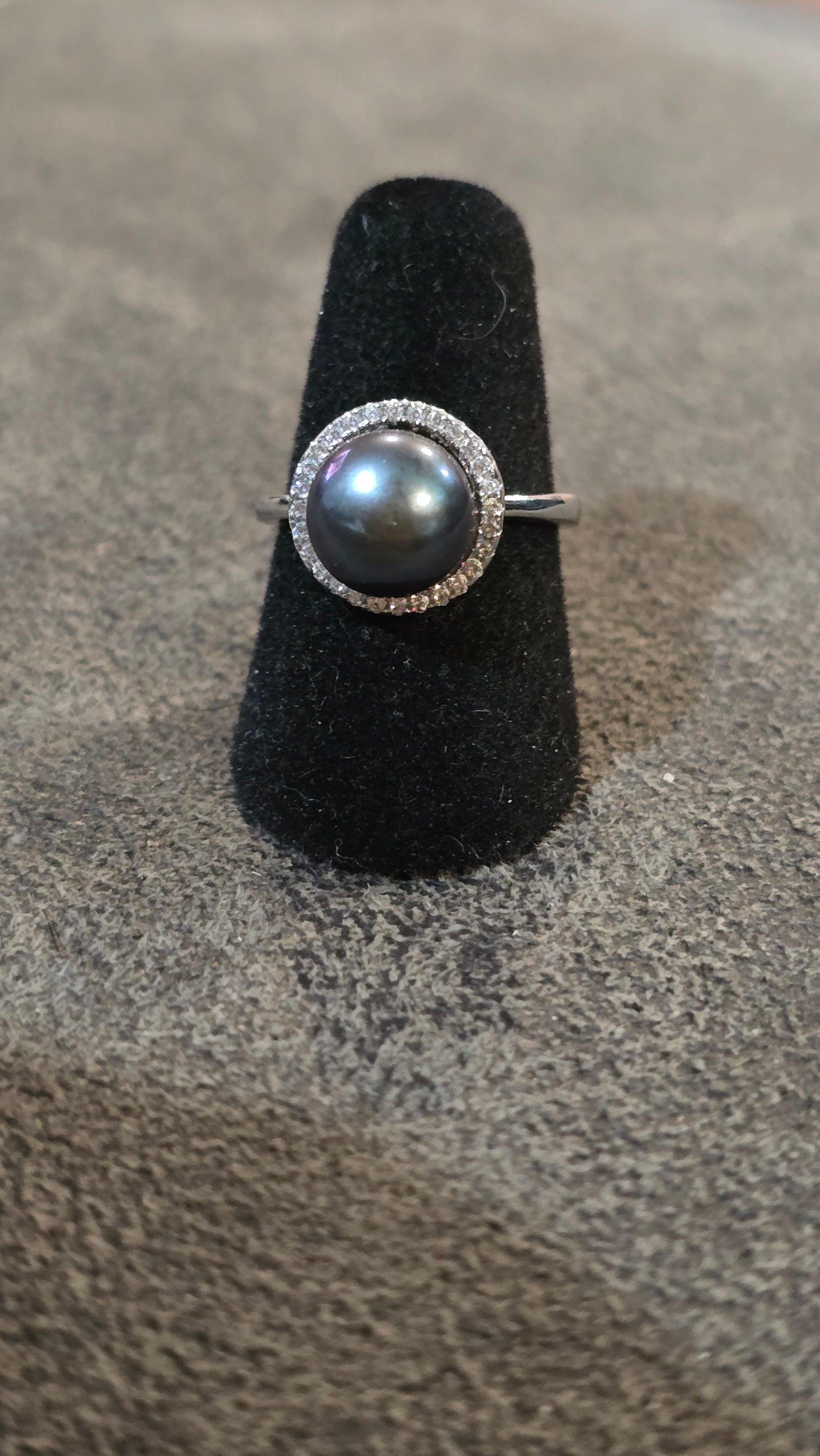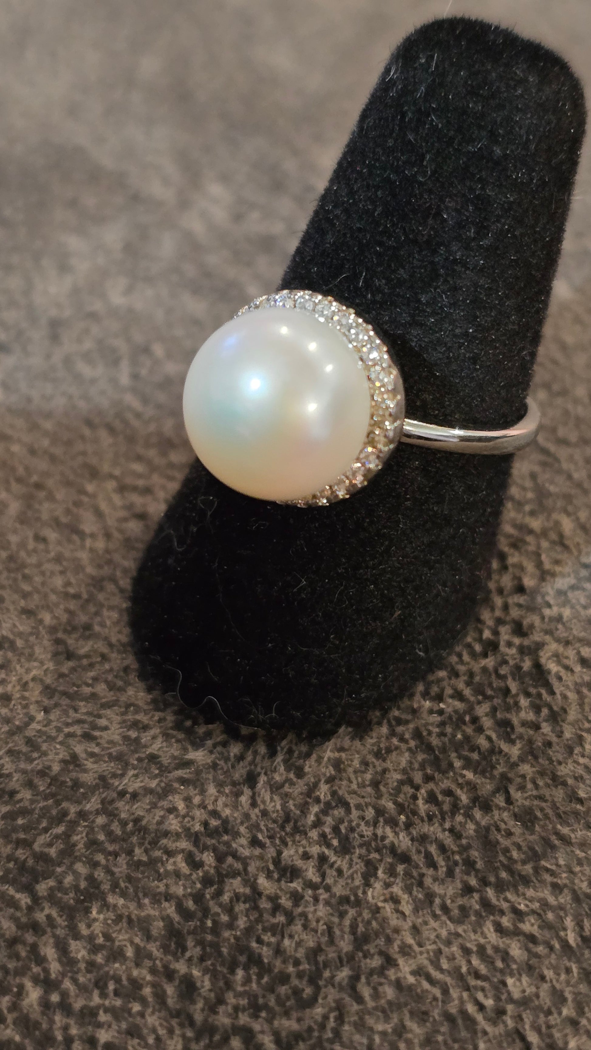 10mm Freshwater Cultured Pearl Sterling Silver Adjustable Ring