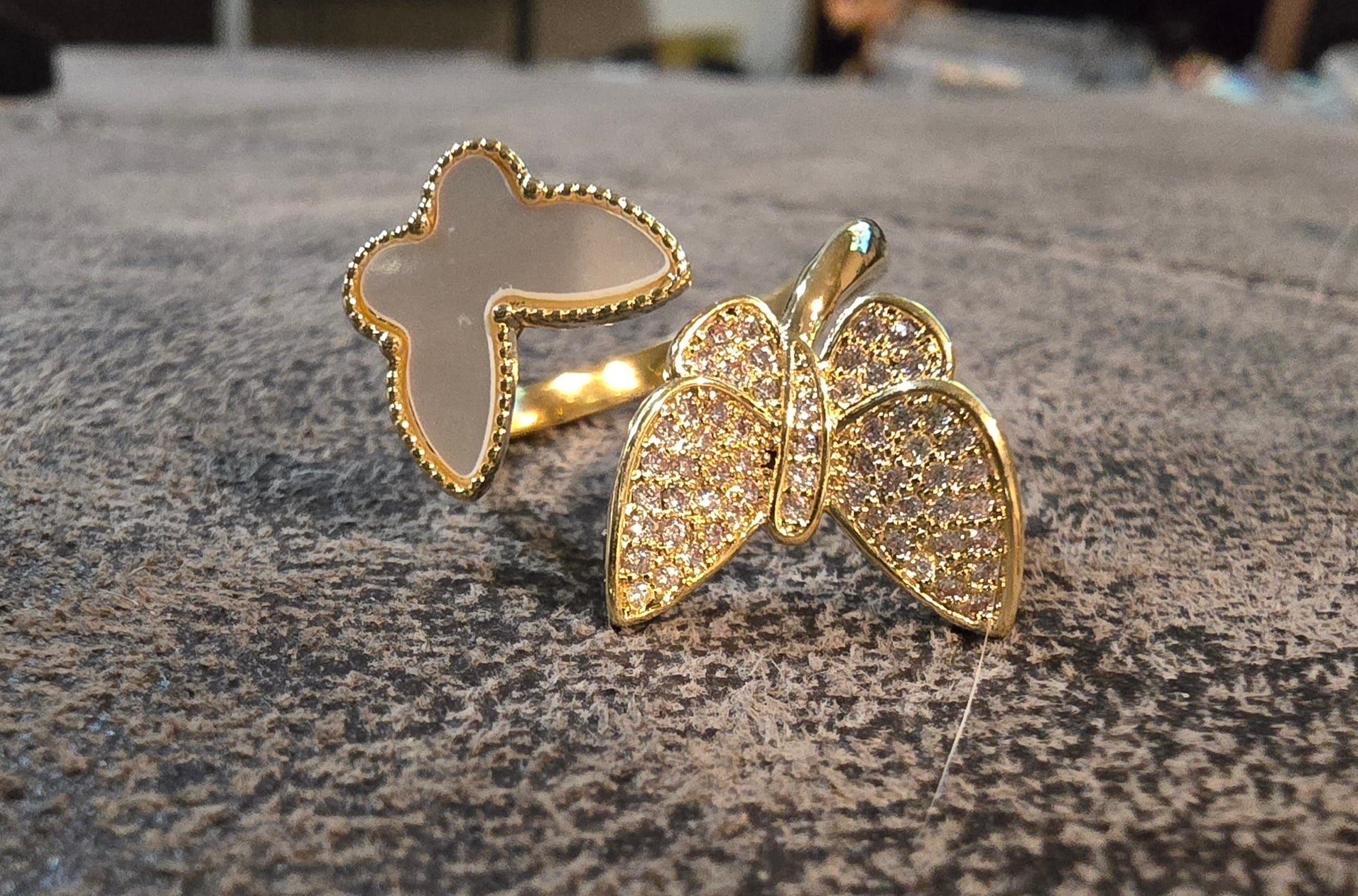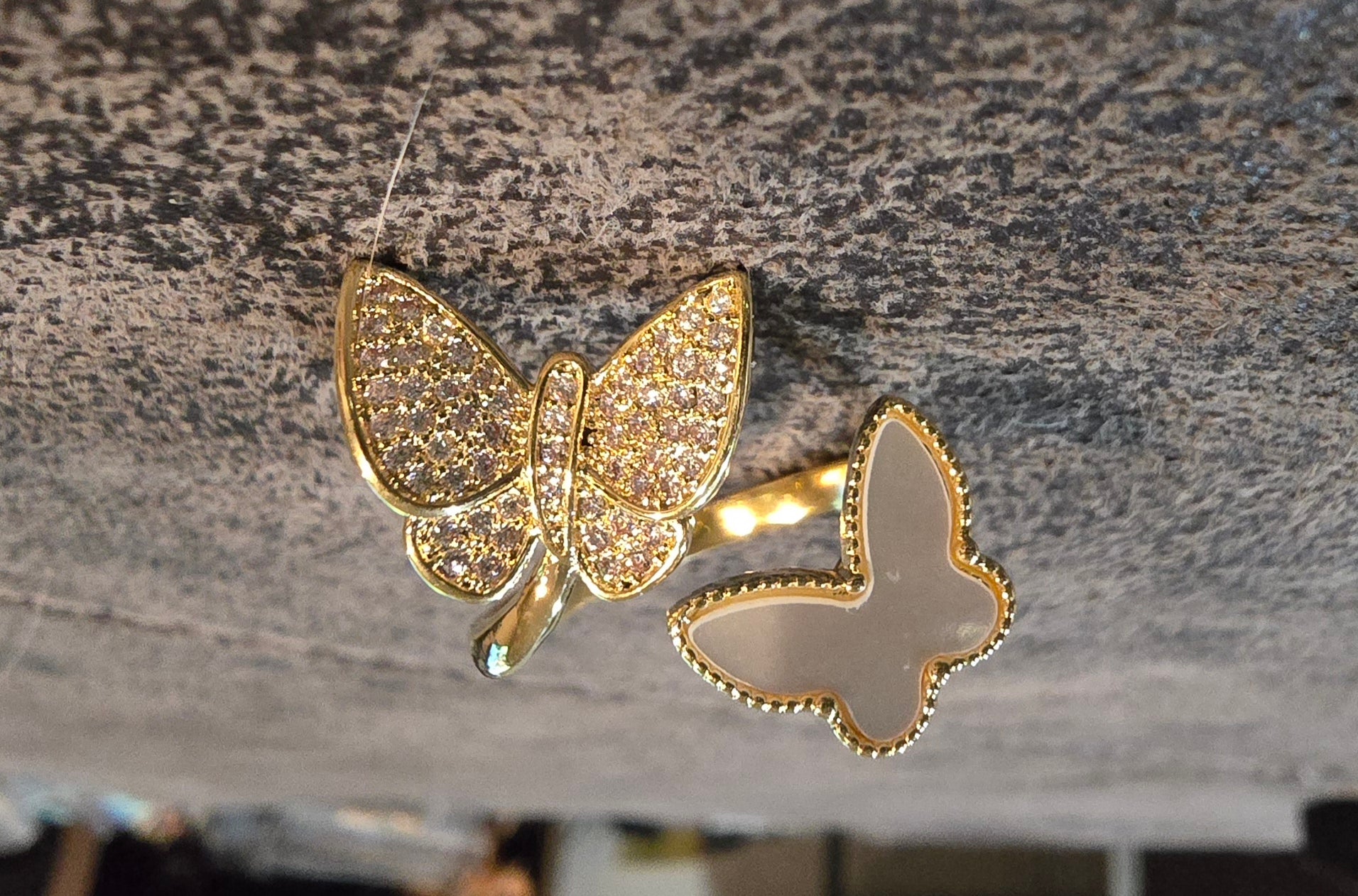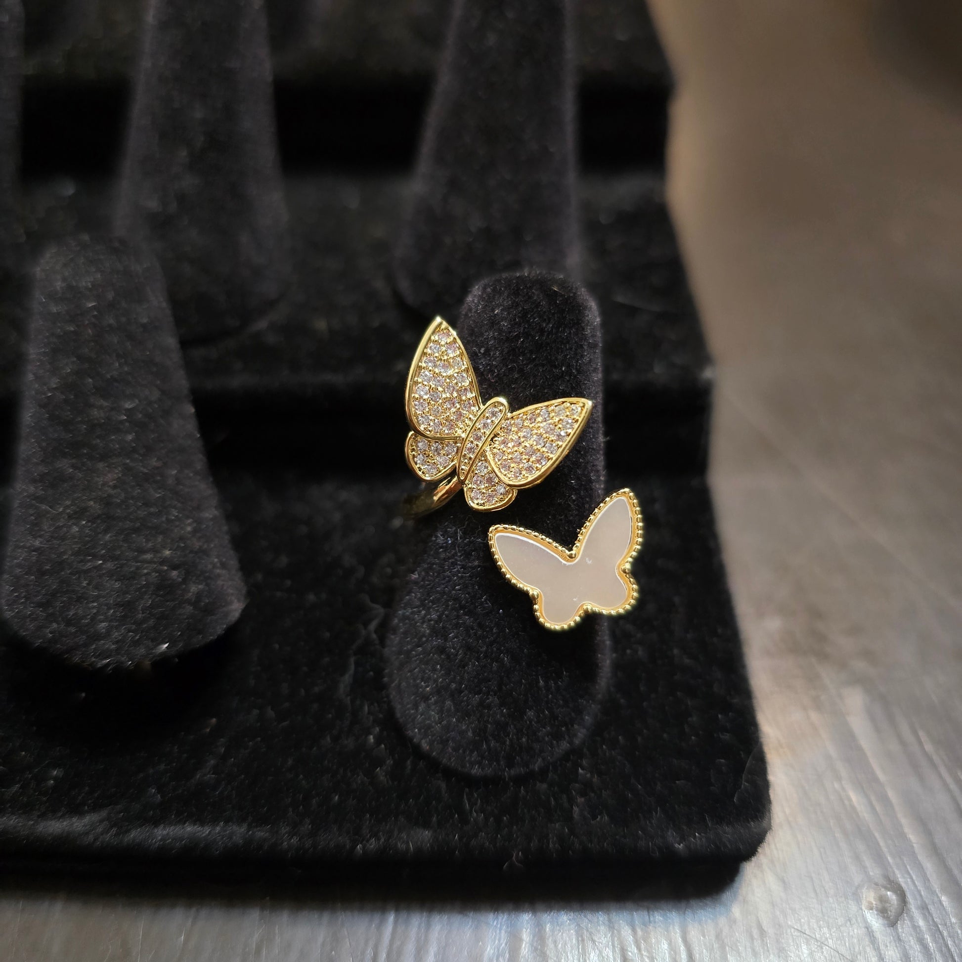 18k gold plated Mother of pearl and cz accent butterfly ring size 7