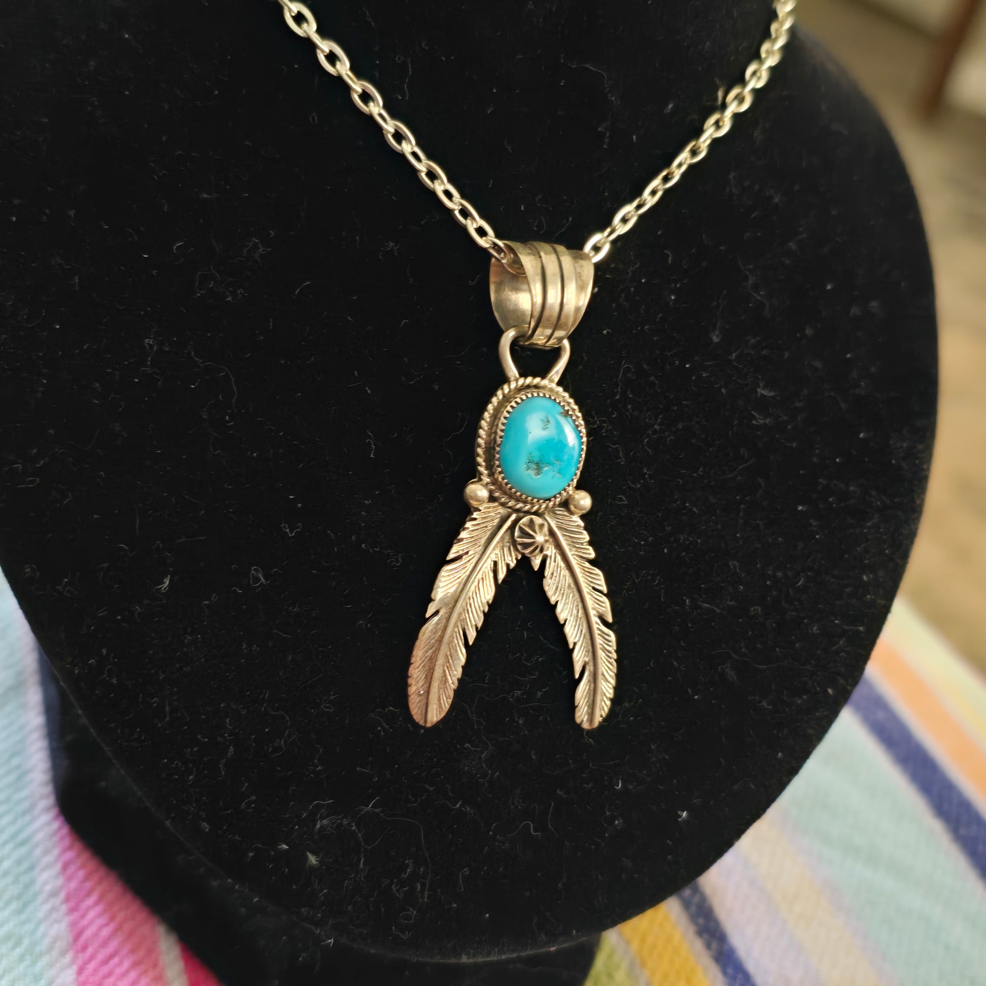 Sterling silver turquoise feather pendant
