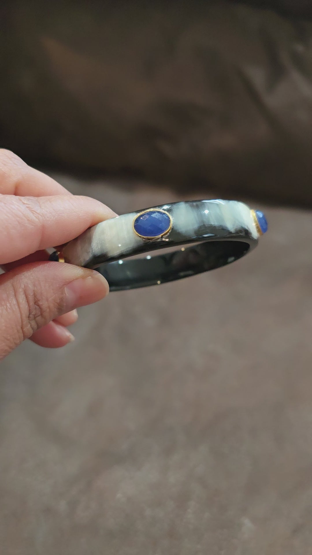 Natural Buffalo Horn Bangle with lapis stones