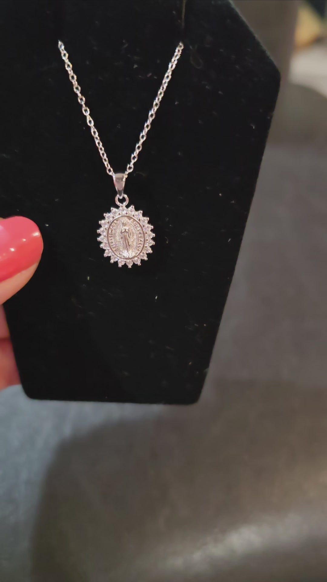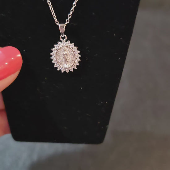 Sterling silver Virgen of Guadalupe CZ accents Pendant